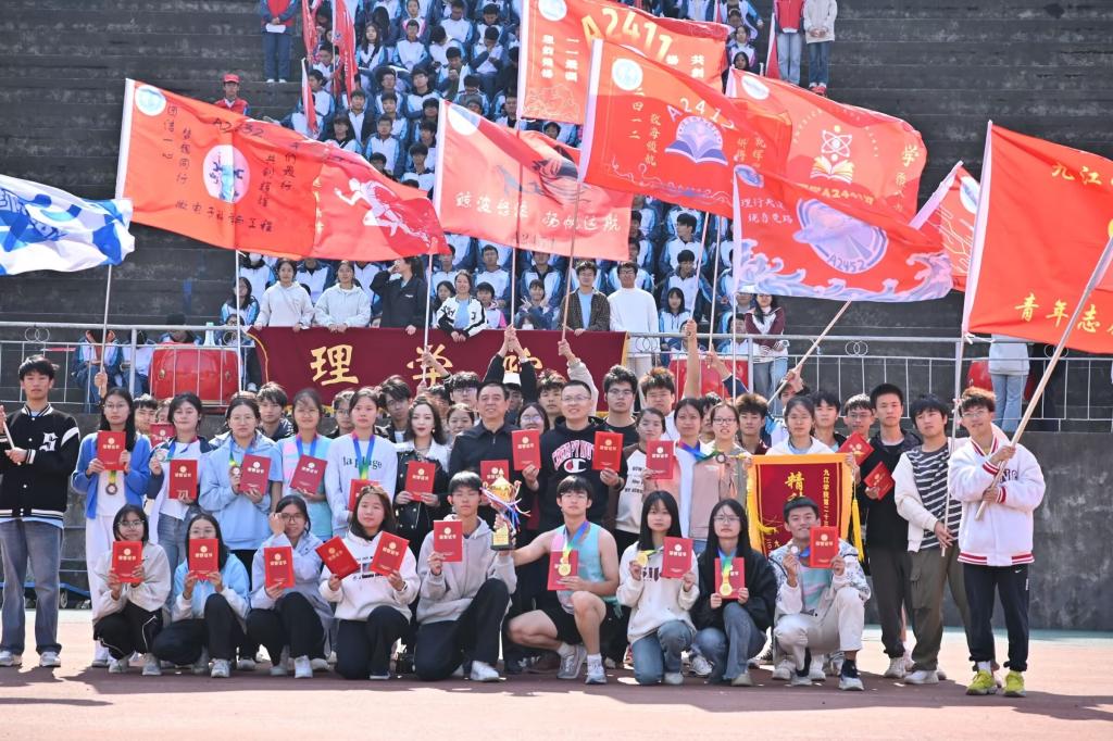 2024年10月25日上午,九江学院第二十三届运动会在南区田径场圆满闭幕。理学院运动健儿凭借团结协作、奋勇争先的出色表现,最终取得团体总分第二名及精神文明奖的优异成绩,再次刷新理学院校运会历史最好成绩。