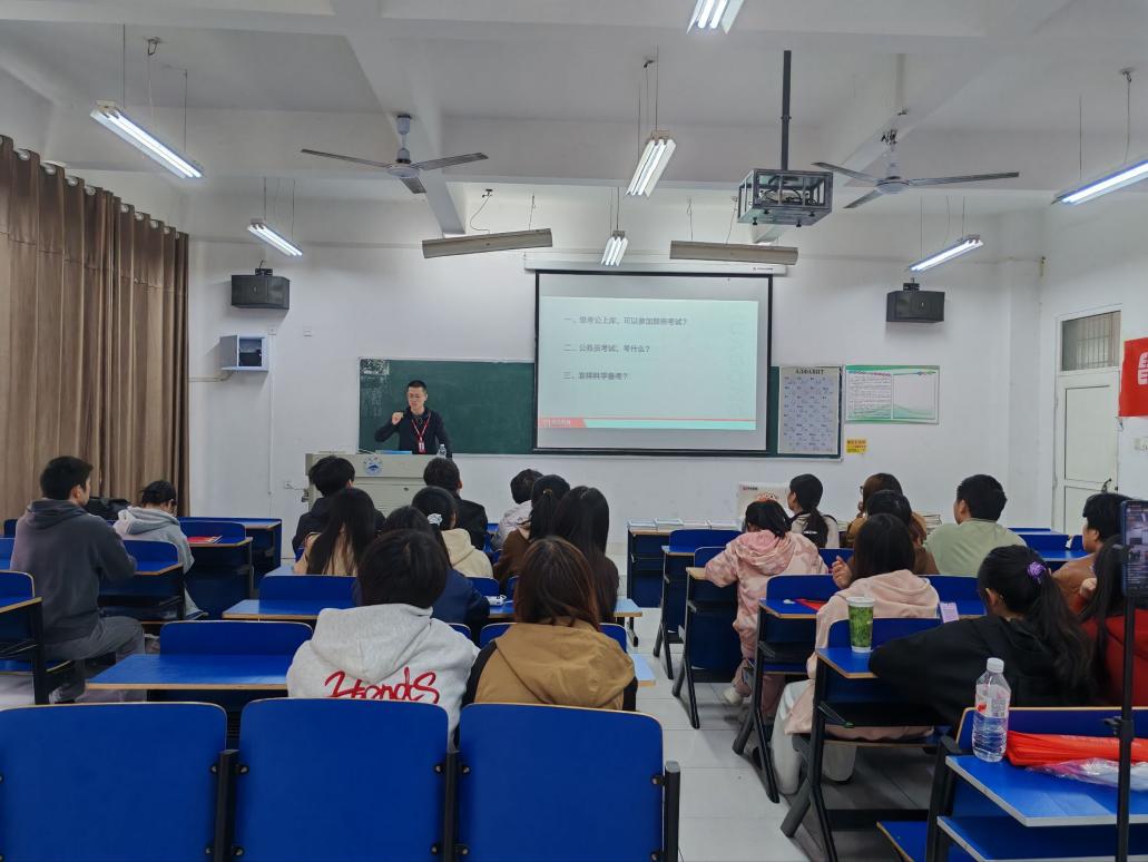 为帮助理学院学子明确公务员考试方向、掌握科学备考方法,10月29日下午,华公教育在文友楼217教室举办公务员考试备考指导公益课,吸引众多有意报考公务员的学生参加。