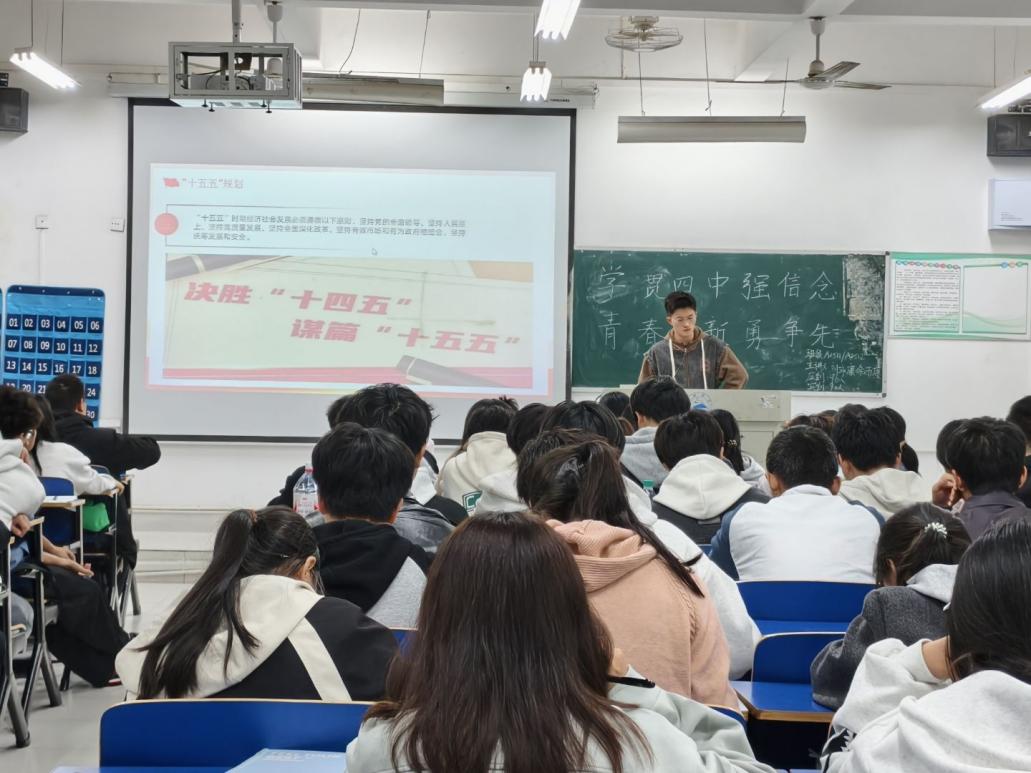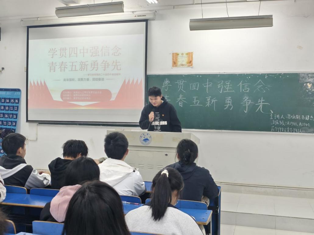 为深入学习贯彻党的二十届四中全会精神,引导青年学生将个人成长融入国家发展大局,2025年11月5日晚,理学院于文友楼各班教室组织开展"学贯四中强信念,青春五新勇当先"主题团日活动。青年学子通过专题学习共话"十四五"成就,共绘"十五五"蓝图,在思想碰撞中厚植家国情怀,激扬青春担当。