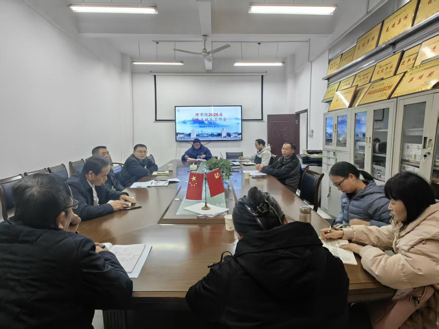 为深入贯彻习近平总书记关于就业工作的重要指示批示精神,全面落实党的二十届四中全会,党中央、国务院及省委、省政府、省教育厅和学校关于高校毕业生就业工作的决策部署和工作要求,11月21日下午,理学院在文友楼225会议室召开专题就业工作会议,谋划部署2026届毕业生就业工作。学院领导班子成员、2025届班主任代表、2026届全体班主任、学生科负责人及就业专员参加了会议。会议由学院党委副书记朱俊松主持。 |