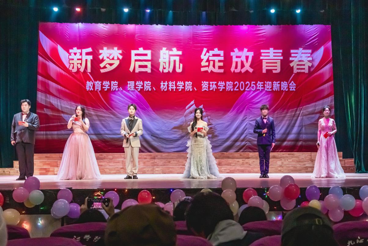年末岁尾寒意渐浓,校园暖意始终涌动。12月6日晚19时,九江学院南门大礼堂内灯火璀璨、欢声如潮,理学院联合教育学院、资源环境学院、材料科学与工程学院共同打造的2025级迎新晚会在此精彩上演。九江学院学工处副处长吴新刚、理学院党委书记袁传发、院长魏健宁、副院长查代奉、党委副书记朱俊松及各学院领导、师生代表与2025级新生齐聚一堂,以青春为翼、以艺术为桥,共同定格这场兼具仪式感与感染力的沉浸式视听盛宴。
