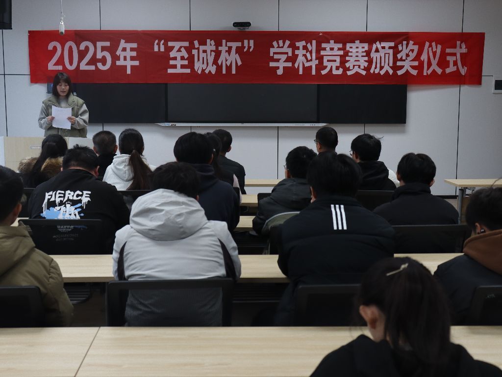 经过激烈的角逐,共决出一等奖1名,二等奖2名,三等奖3名,优秀奖若干。竞赛颁奖仪式于12月10日下午在文友楼314教室举行。理学院党委书记袁传发、至诚教育校区校长项圆、理学院党委副书记朱俊松等领导老师出席仪式。 仪式上,袁传发书记向所有获奖选手表示祝贺。他强调,此次竞赛是我院落实产教融合的具体举措,期待与至诚教育进一步深化合作,为学子搭建优质桥梁;同时肯定参赛学子在竞赛中展现的才华与实力,他们的专业知识和综合素质得到了检验;他寄语全体同学增强竞争意识,提升竞争能力,勇担时代使命。 至诚教育校区校长项圆在仪式中致辞。她希望同学们能将在竞赛中收获的理性思维、严谨的态度与拼搏进取精神应用到更广阔的学习范围,永远怀揣对未知的好奇与探索欲。 |