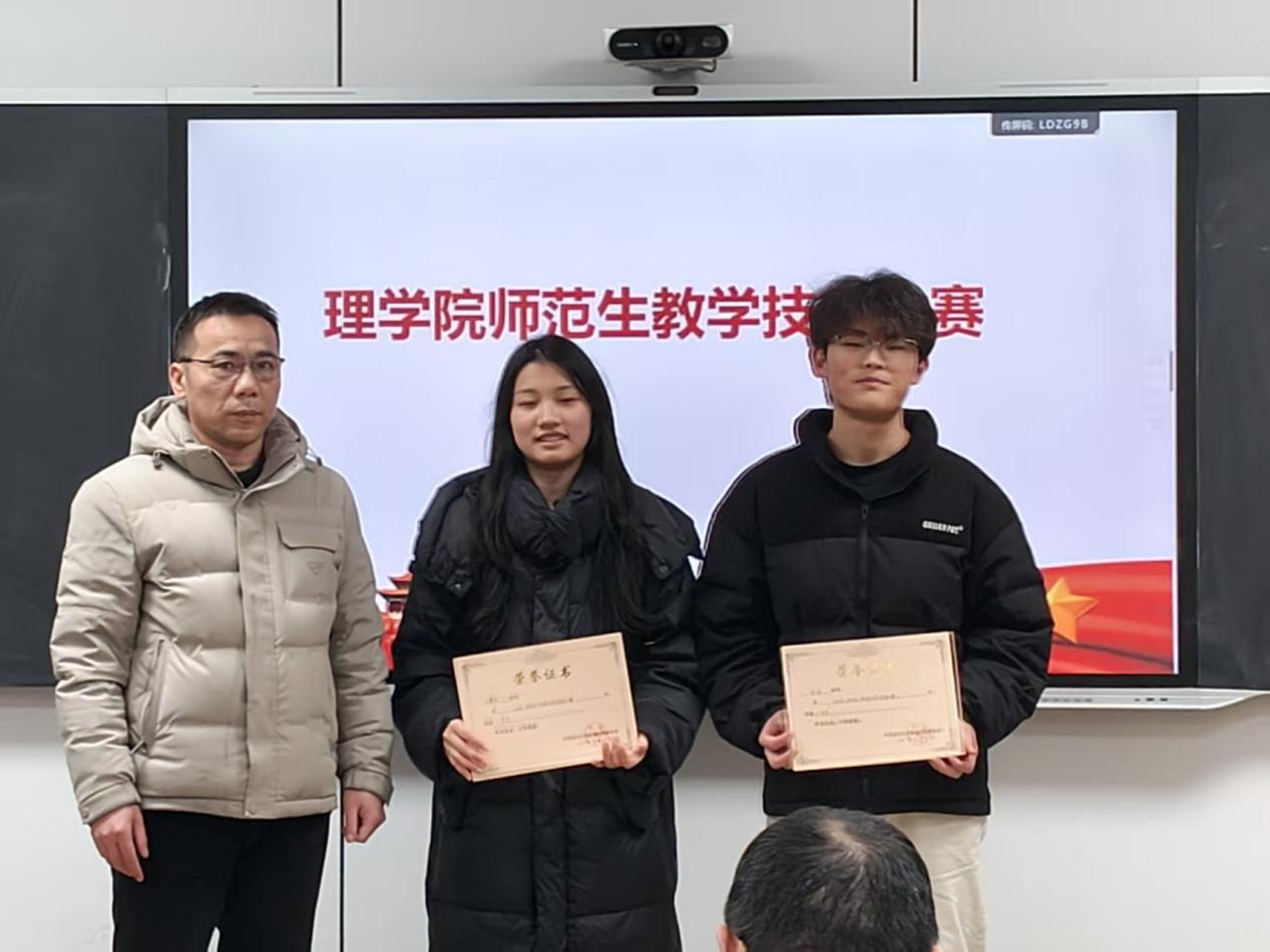 学院领导及专业教师为获奖学生颁发荣誉证书,对竞赛组织工作与选手表现给予充分肯定,并勉励全体物理师范生以竞赛为契机,夯实专业基础、提升教学技能,坚定从教信念,成长为高素质物理教育工作者。 本次竞赛为物理师范生提供了展示教学能力、交流学习经验的重要平台,对促进学院物理学专业建设、提升师范生培养质量具有积极意义。